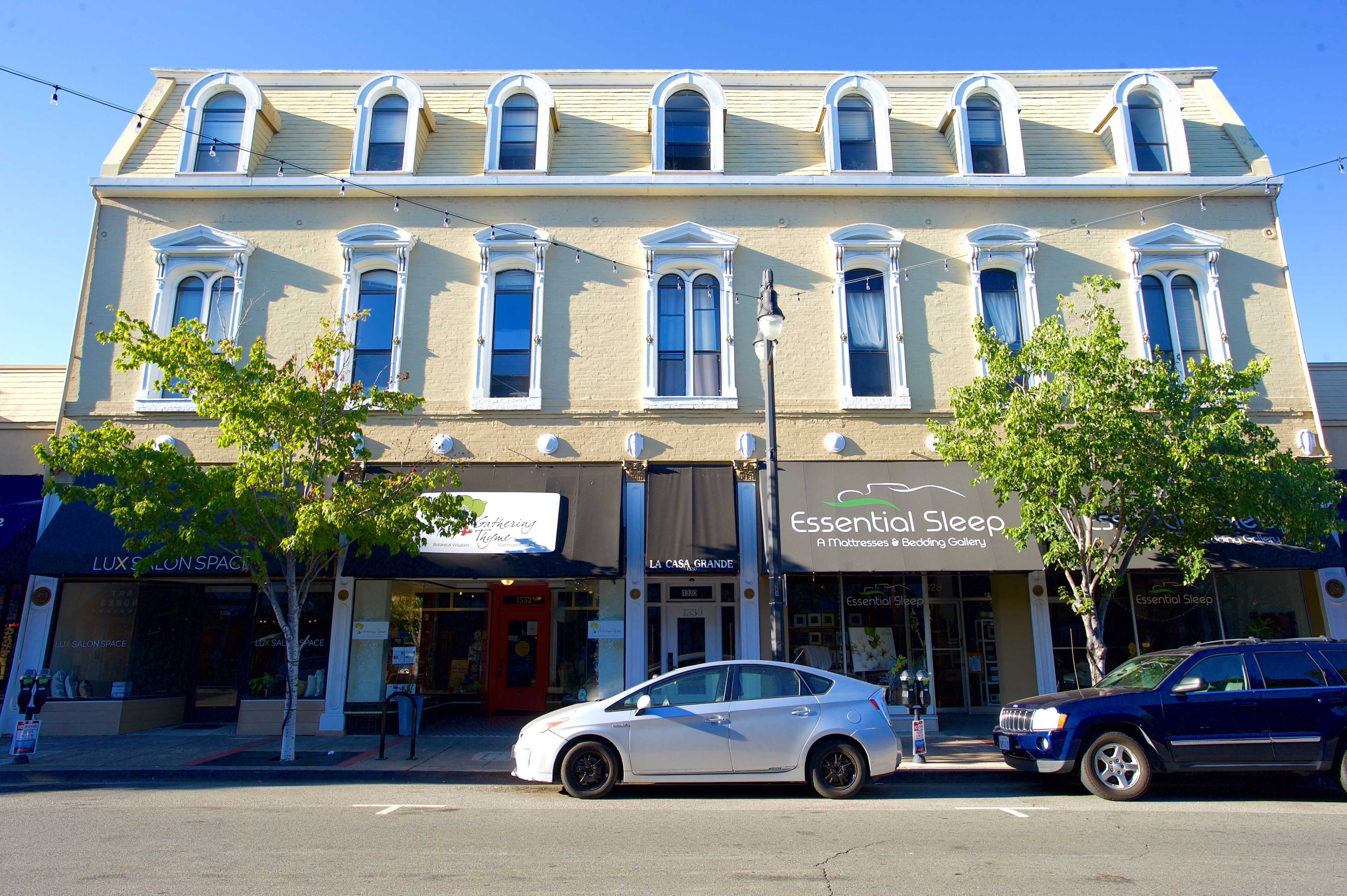 The property was recently featured in Marin Magazine, defining it as "an elegant example of the French Second Empire Style". The article boasted about its "curved-arch dormer windows" and praising that it "was one of the grandest hotels in Marin County when it was built in 1875"! Now the building is home to 25 apartments and ground floor shops!